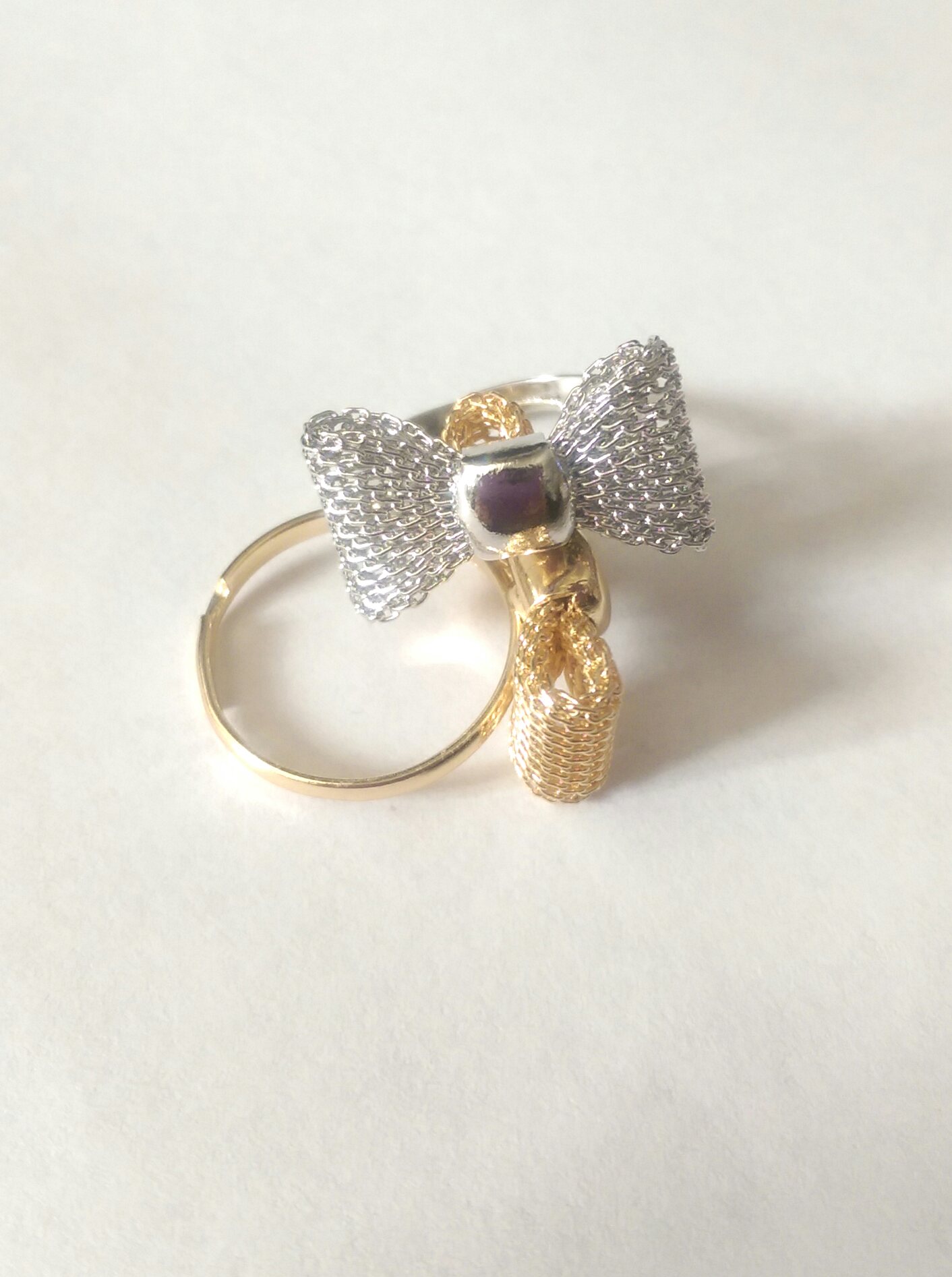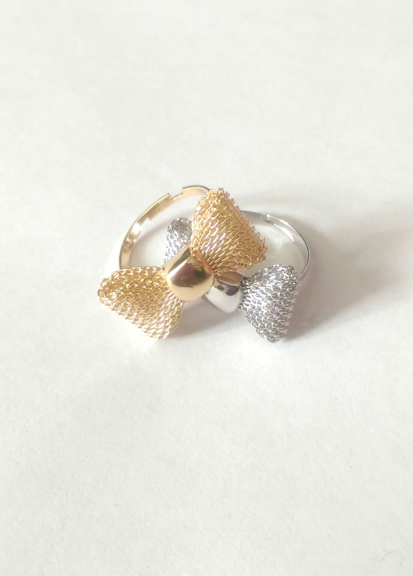 Mesh Bow Rings - Bowknot Adjustable Ring - Gold and silver Tone Bow Ring