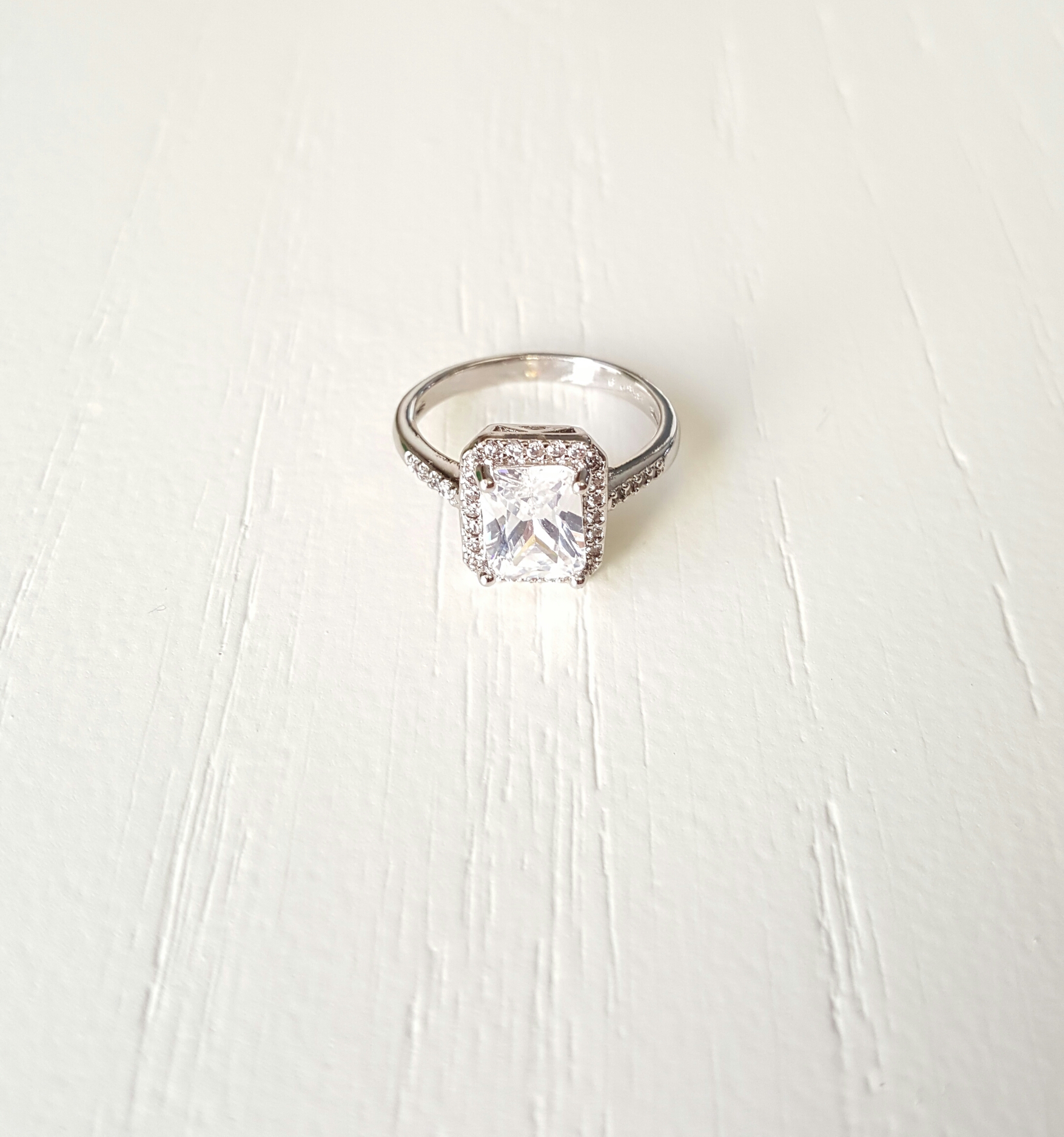 These Big Rock, square design rings are just adorable... so gorgeous. Beautiful big square stone in center, lined with rhinestones to accent square design. ( 18k Plated )