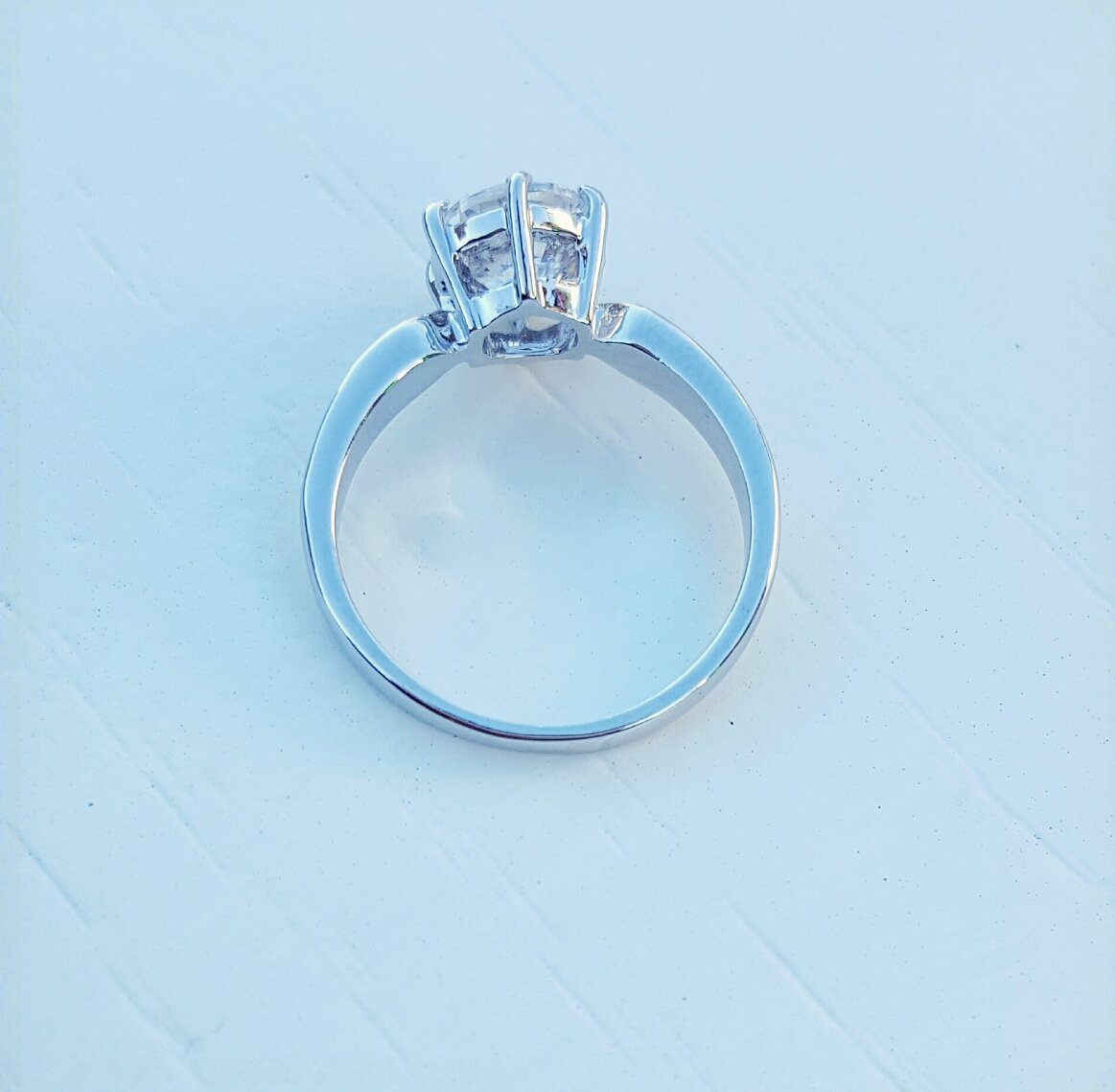 Stunning Round Cut Solitaire Ring with side Stones. Available in Rosegold or silver-plated. Gorgeous ring and perfect for an anniversary ring or just because.