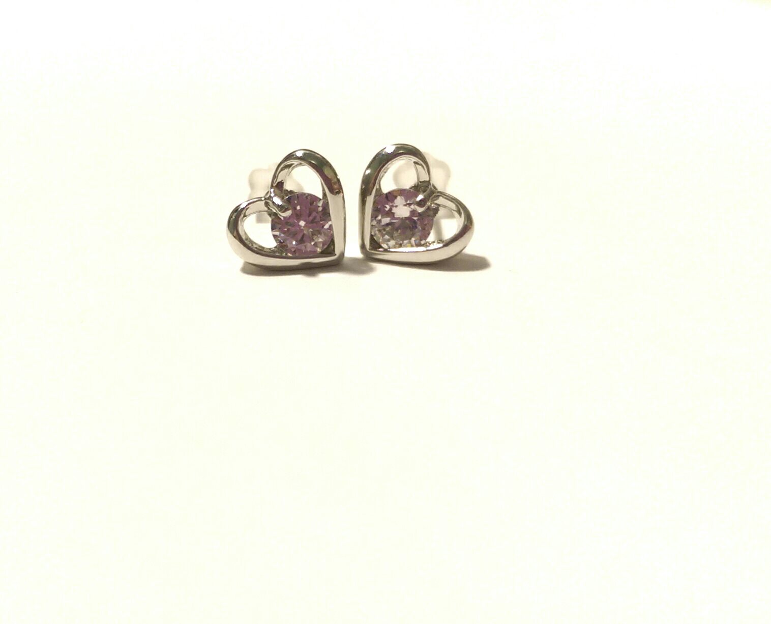 Beautiful Heart shaped stud earrings with stone in the middle, (18k gold plated). come in gold or silver. (3/8" x 3/8")
