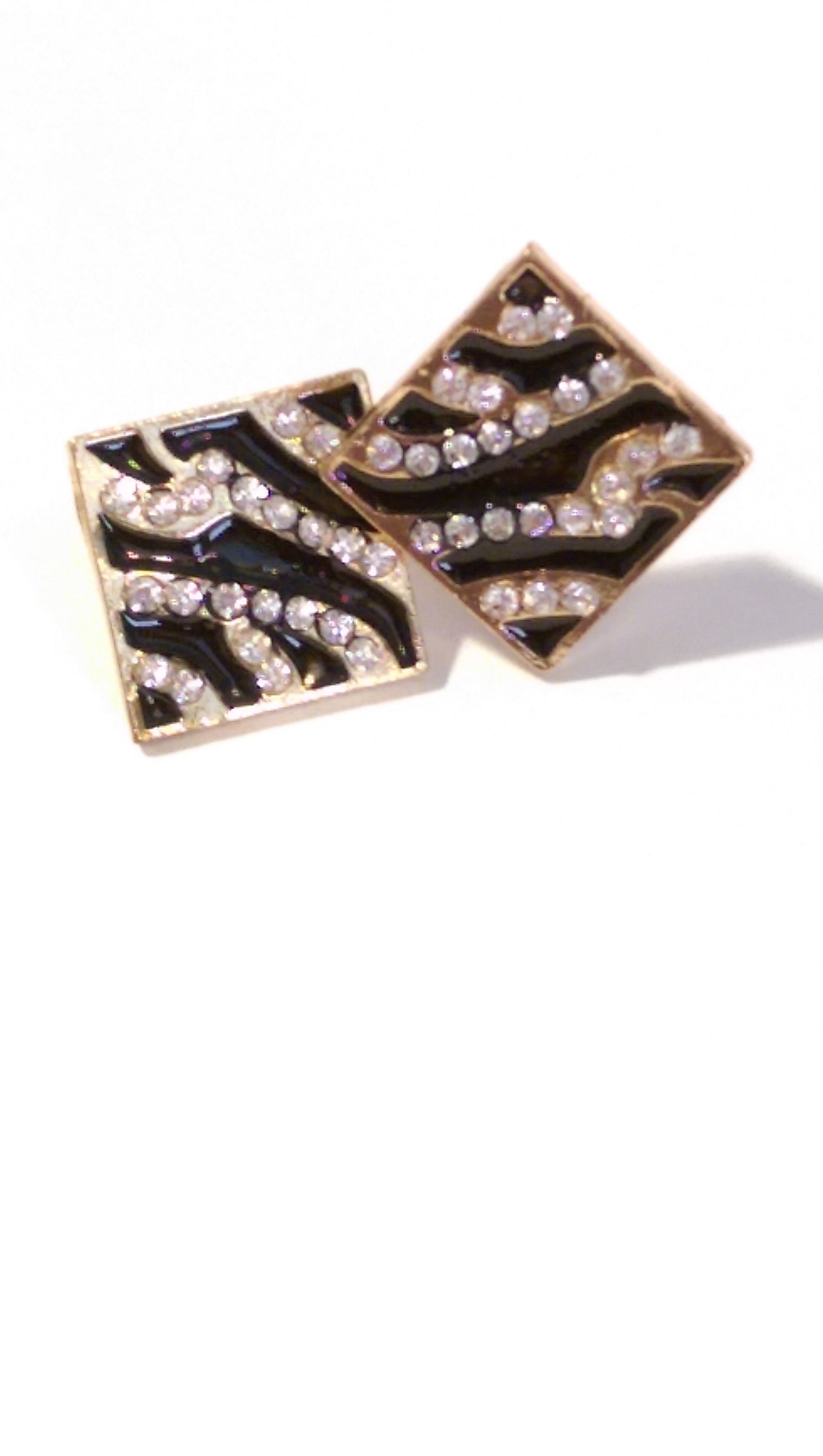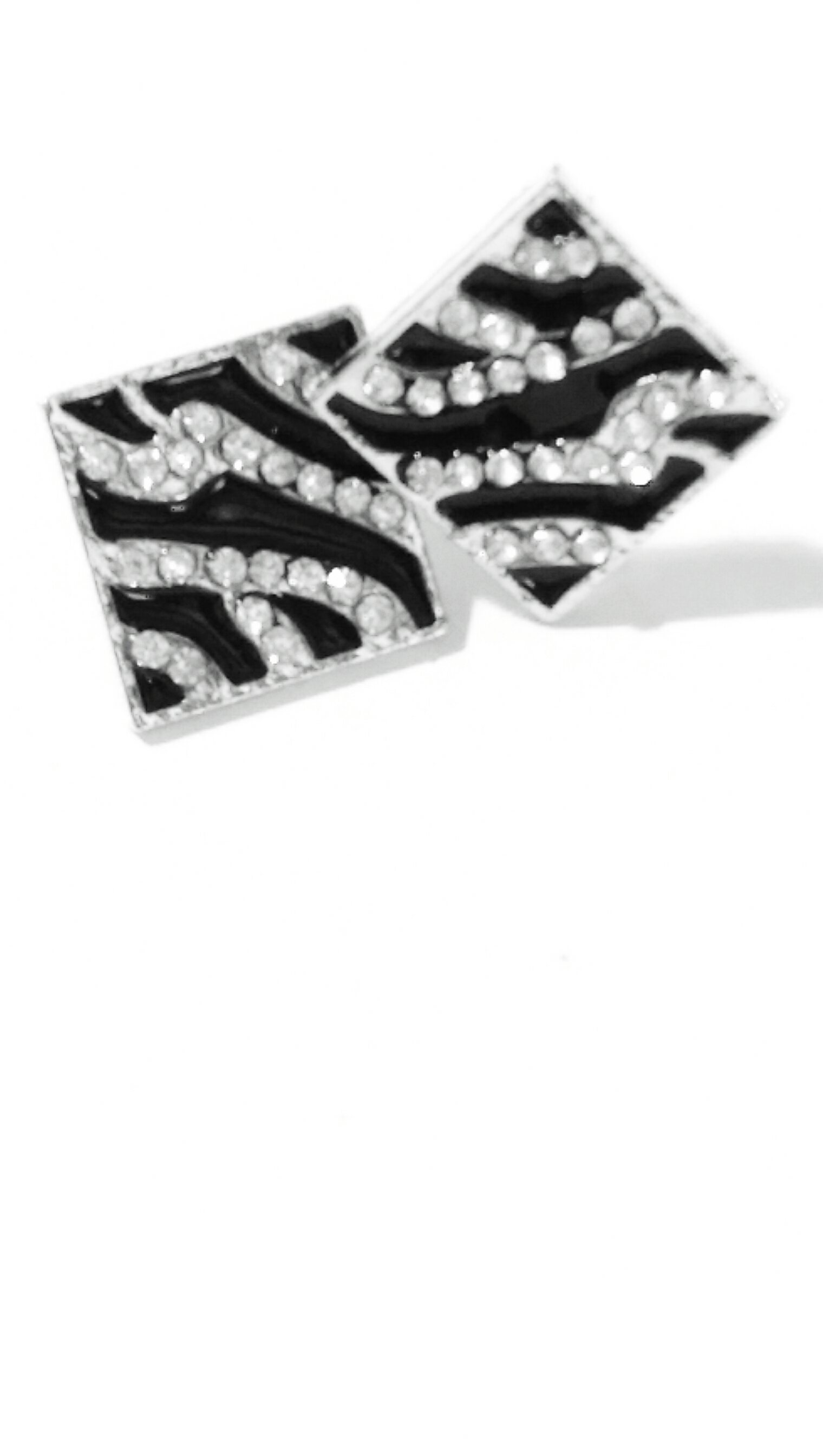 Attractive, Diamond Shape, Striped Black & White Stud Earrings.
