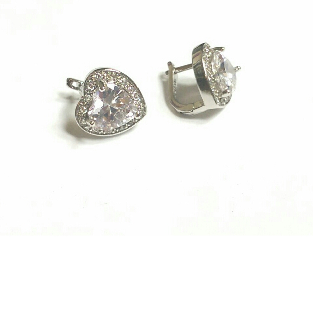 These "Heart" earrings are adorable. Beautiful big heart stone in center, lined with rhinestones to accent heart. Just gorgeous. ( 18k Plated ) match color of our heart rings.