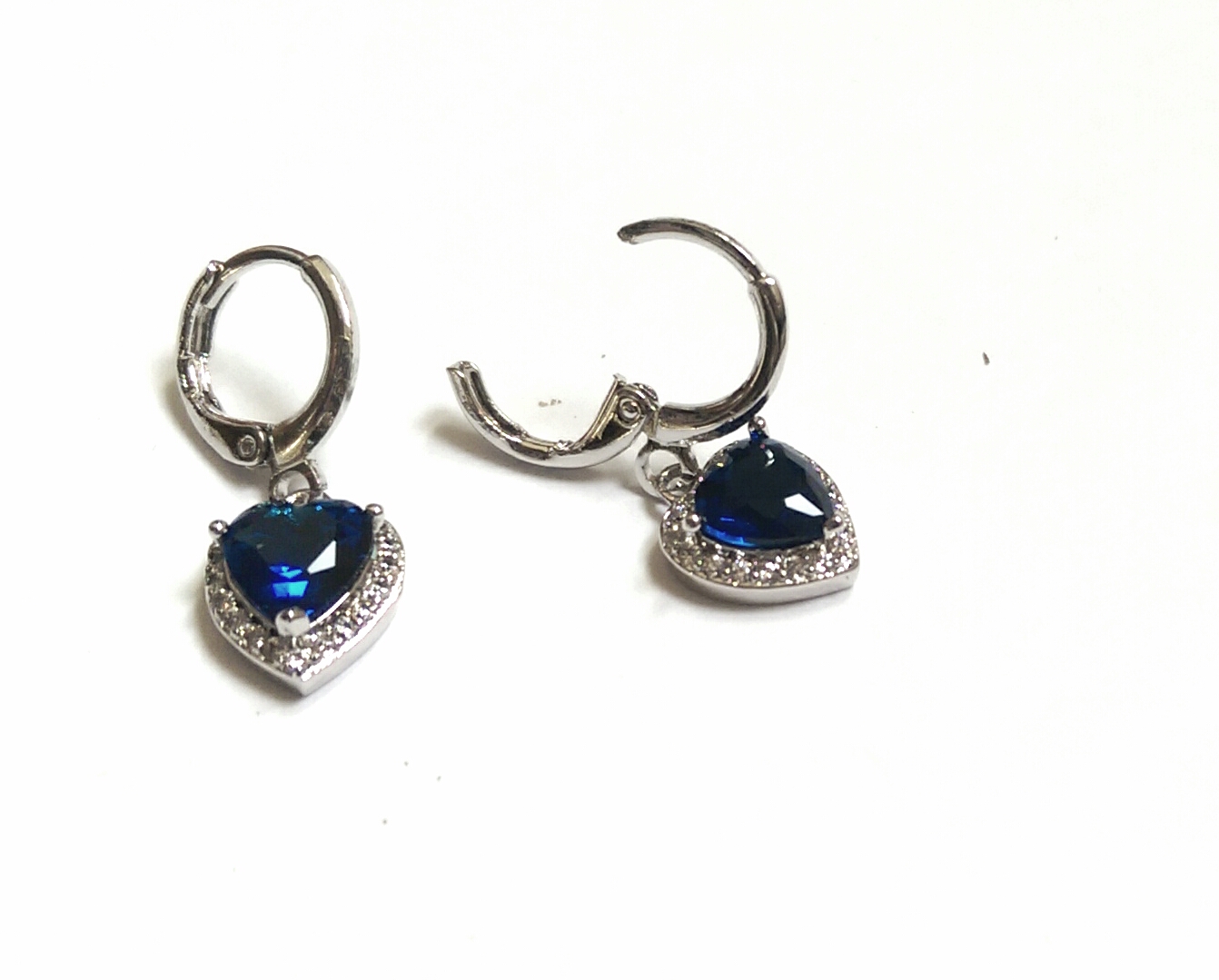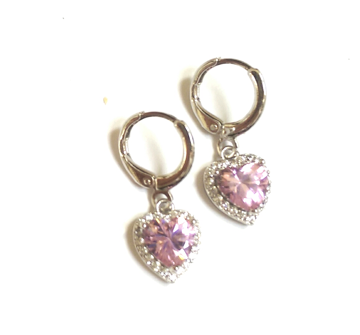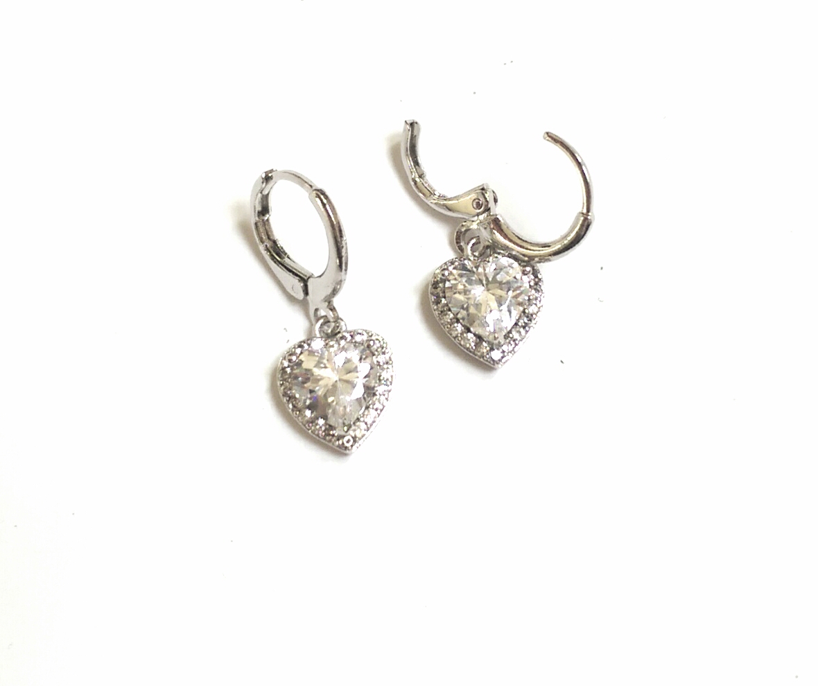 Drop down heart earrings dangle just perfect... Beautiful heart stone in center, lined with rhinestones to accent heart. Just gorgeous. (18k white)