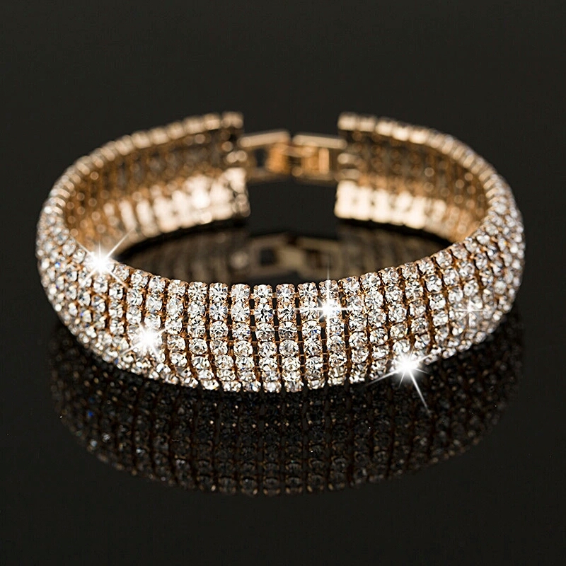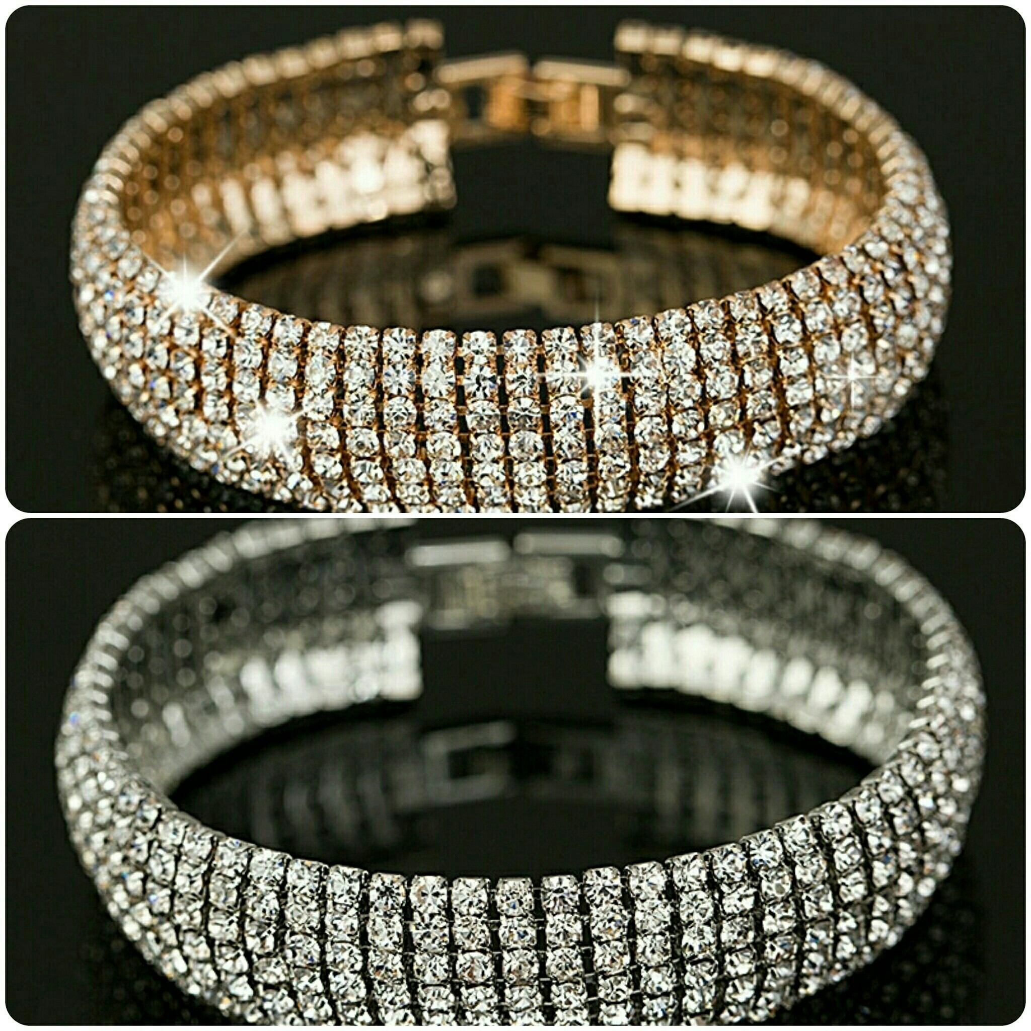 Gorgeous 7-Layers of Rhinestones on this bangle. Fits and looks perfect... comes in both gold and silver tone.