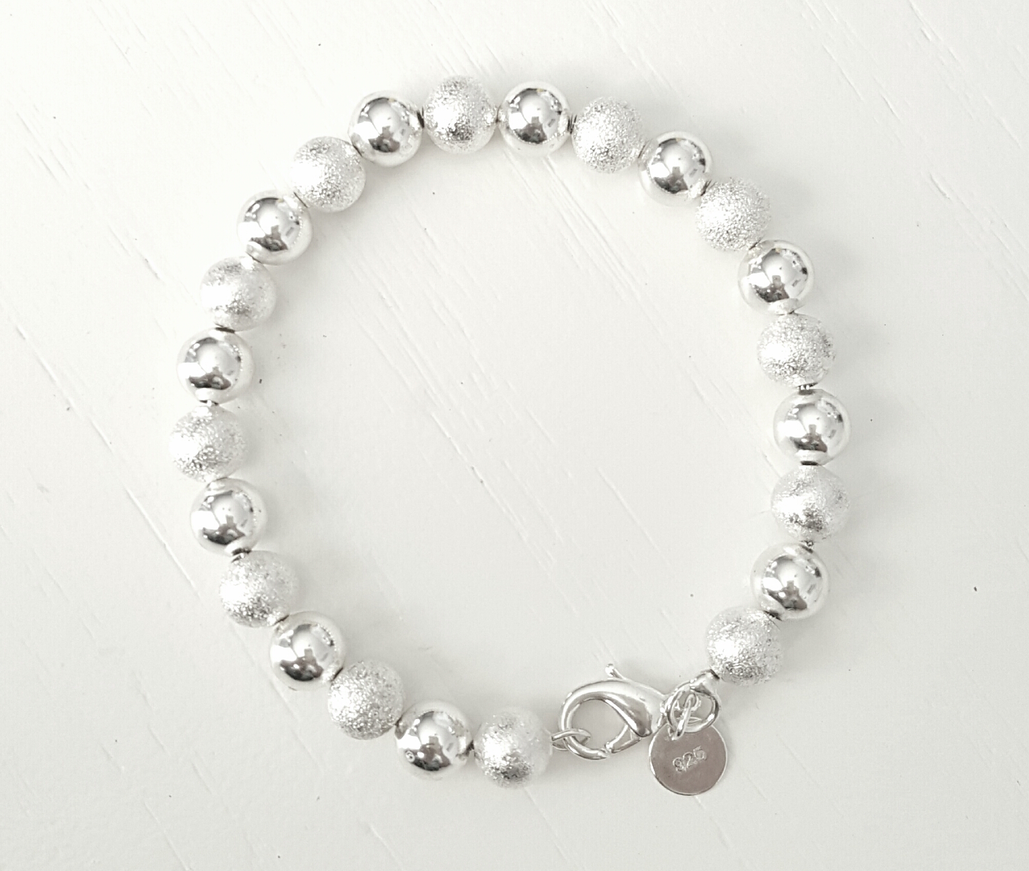 8" Silver plated Beaded Bracelet, with mix matte and glossy beads... Beautiful!