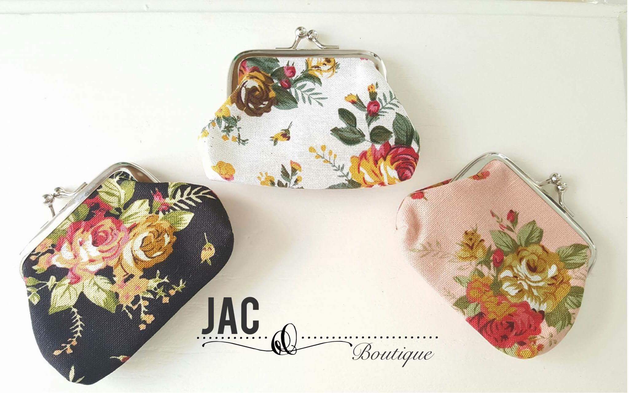 Vintage Coin Purses... Rose Print...Fits perfect in every bag.