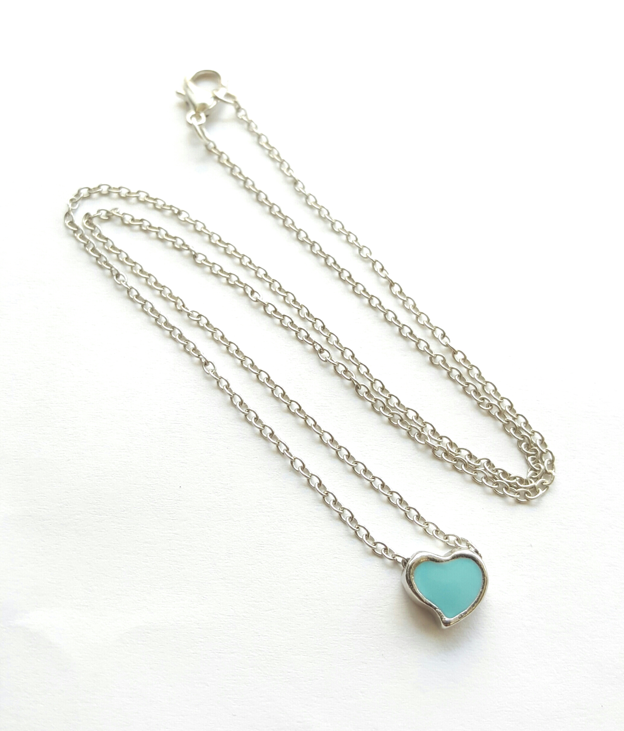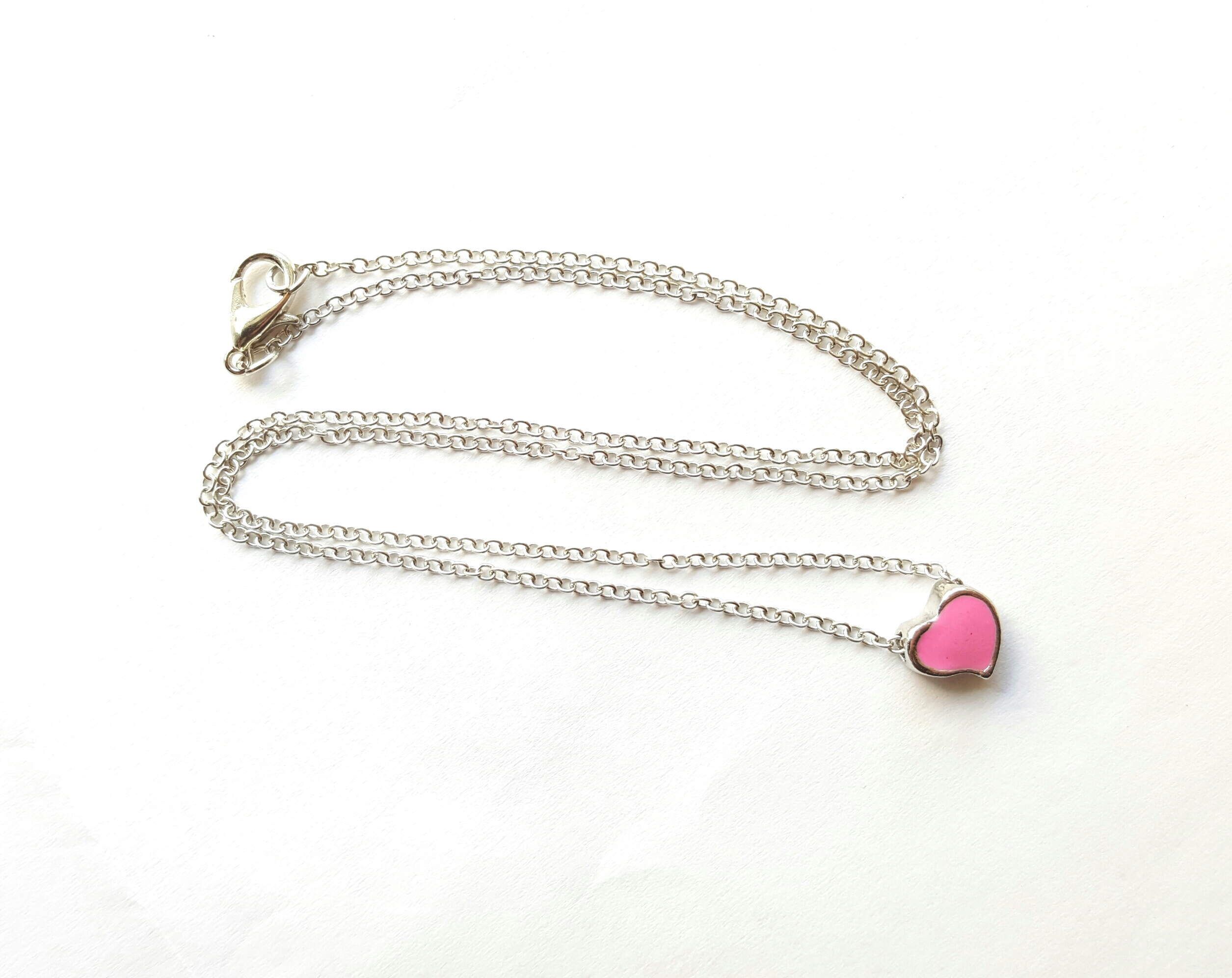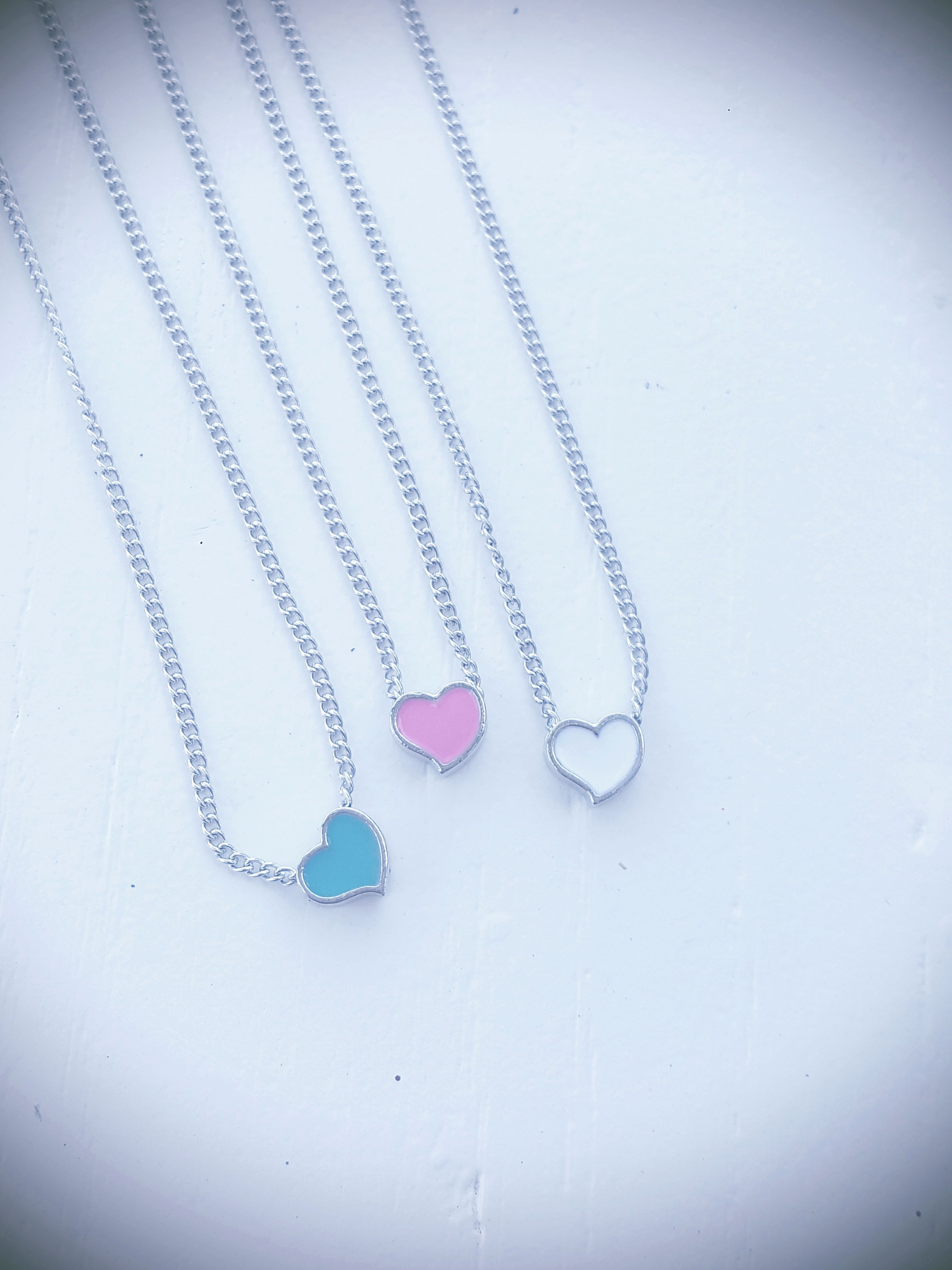 Baby Heart Necklace - Heart Charm Necklace - Pink, Blue, White heart Necklace - Silver Necklace with Heart Charm