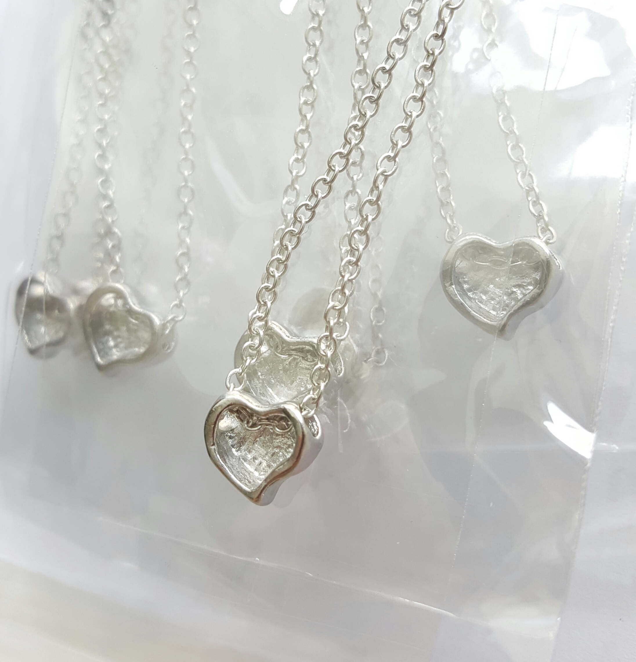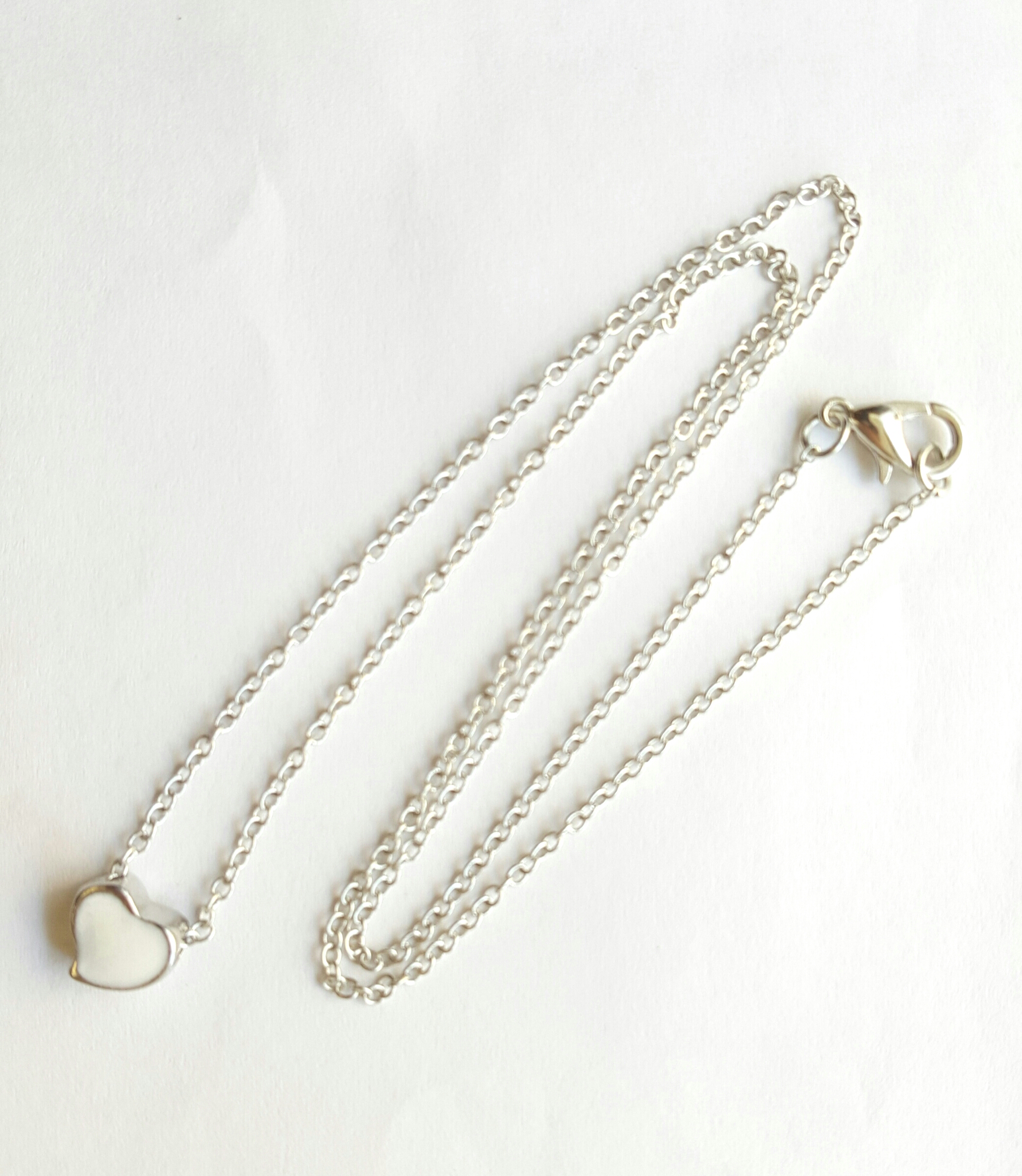 "Baby Heart" necklaces, just adorable. A (pink, white or baby blue) heart with silver lining on a silver necklace... Choose your favorite color or get all 3! Perfect for both adults and children.