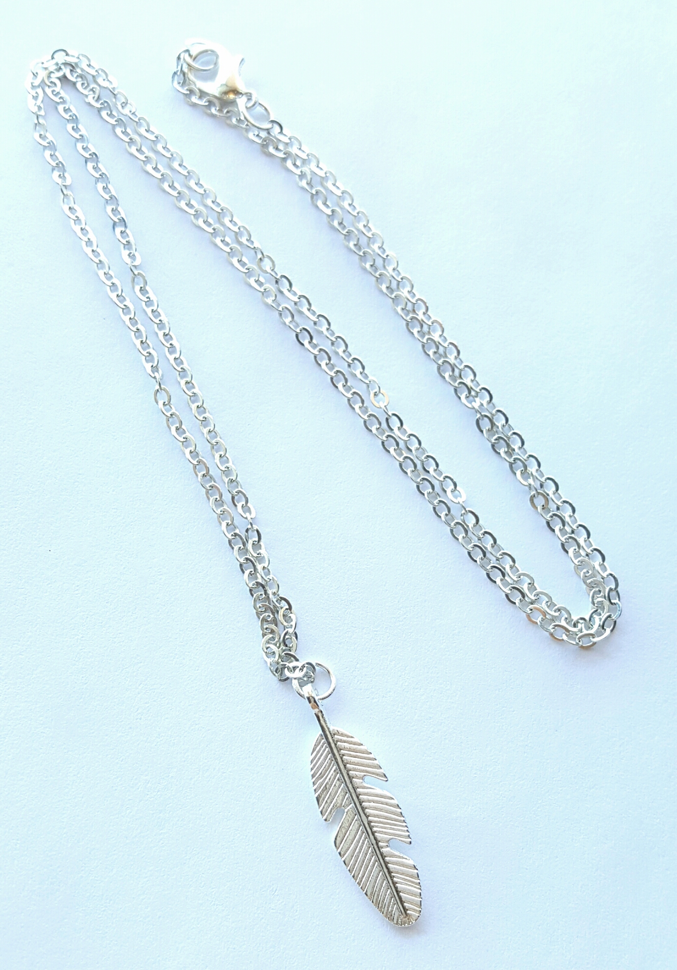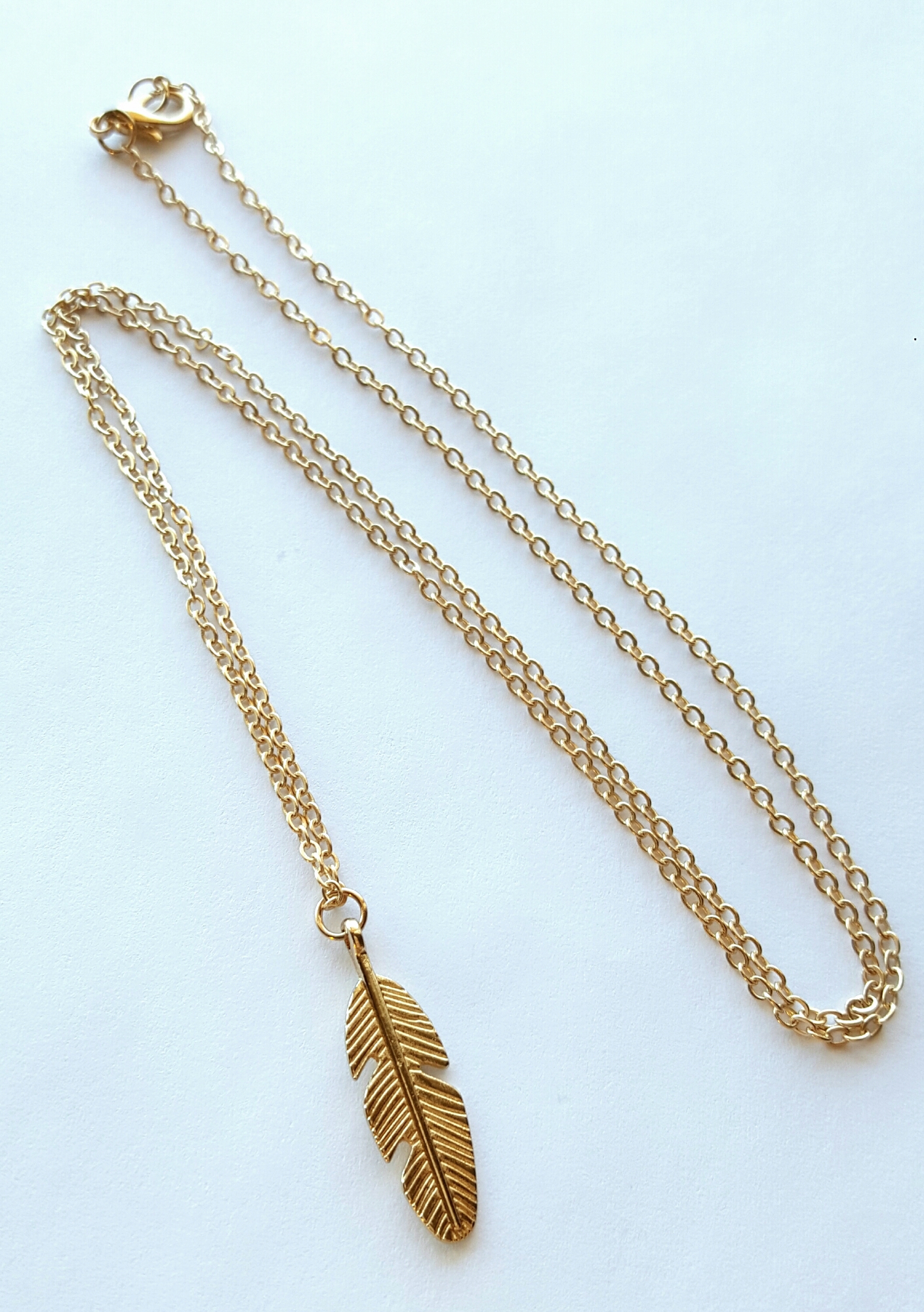 Beautiful "feather charm" long necklace... available in gold and silver tones.