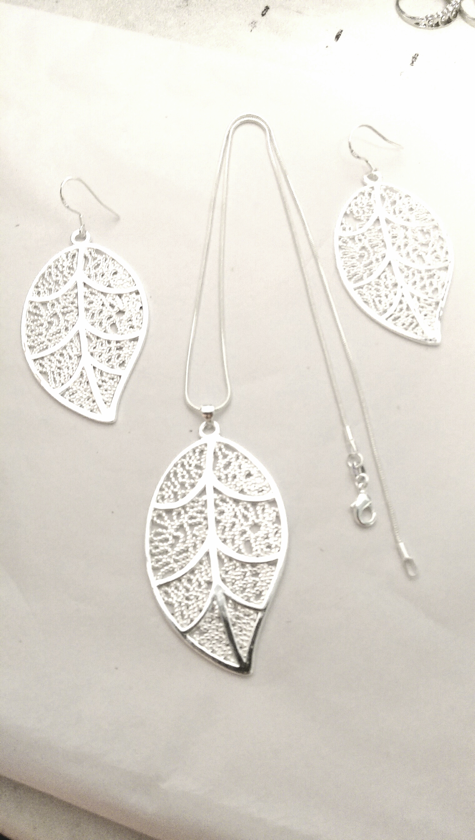 Beautiful Leaf Pendant Necklace and Leaf Earrings set.