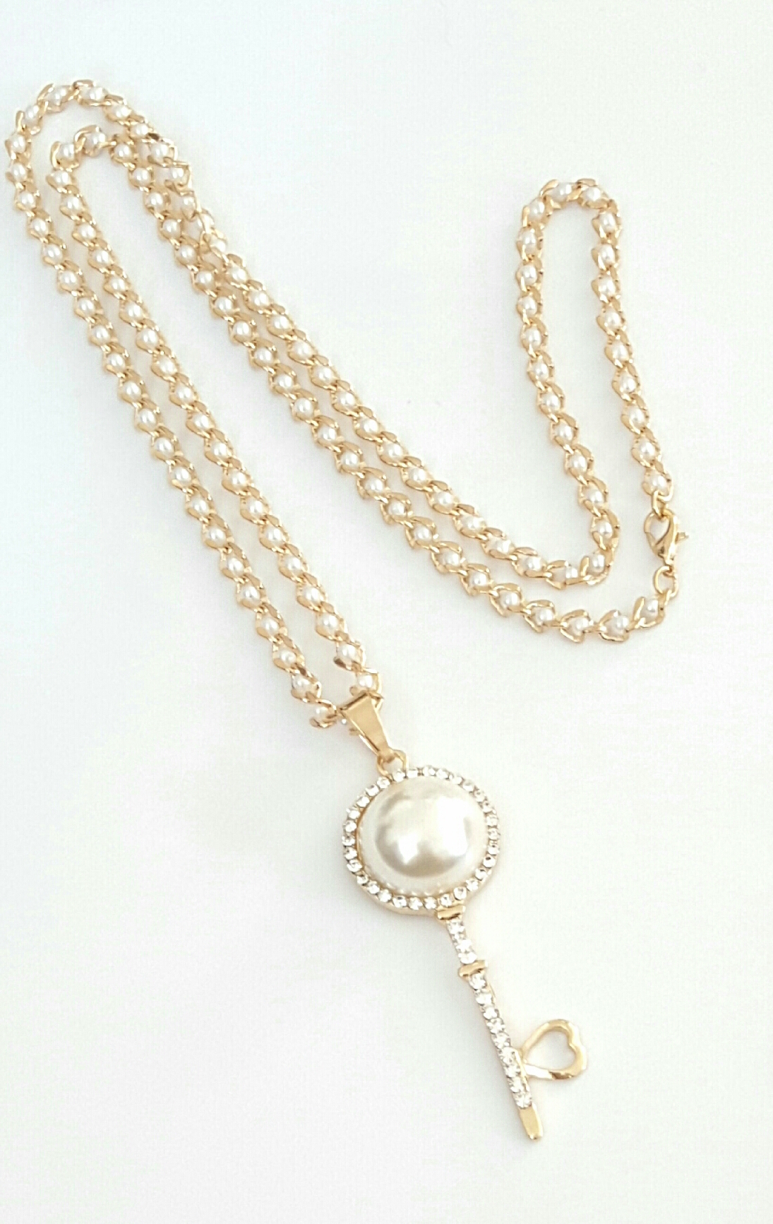 Beautiful Pearl Key, long necklace. Fashion necklace is rosegold or silver tone with small detailed pearls on necklace... looks amazing on. Gorgeous!