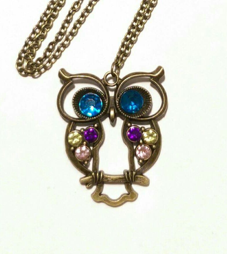 This Sweet Owl Is bronze and owl has attractive colorful rhinestones. Just beautiful.